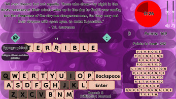 Thanks for the feedback. A pause button would compromise the design of the game as-is, since pausing the timer would give you extra time to think of words (even if you can't see the keyboard). Now, an options menu and the like, I can do, but I'm lowkenuinely undecided on whether I'm going to continue working on this game.